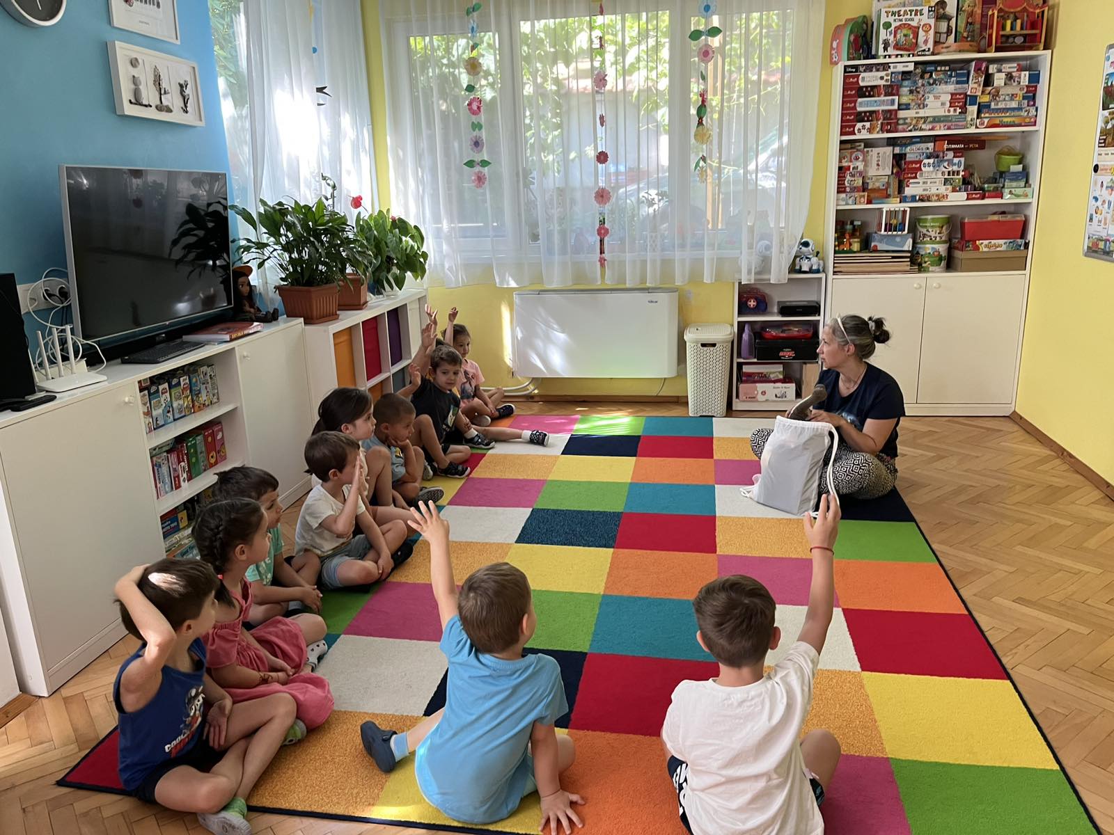 Днес беше един от онези дни, които не забравяш. Сутринта ме посрещнаха 15 малки чифта детски очи в ЧДГ „Българанче“ . Очи на деца между 3 и 6 години, които бързо разбраха, че предстои нещо специално. Бяха послушно седнали в кръг, очаквайки звездното пътешествие с мен. В ръцете си носех моята „Звездна одисея“, а в чантата — две меки плюшени изненади: малкото коте Ая и динозавърът Благо, готови да оживеят пред новата си публика.