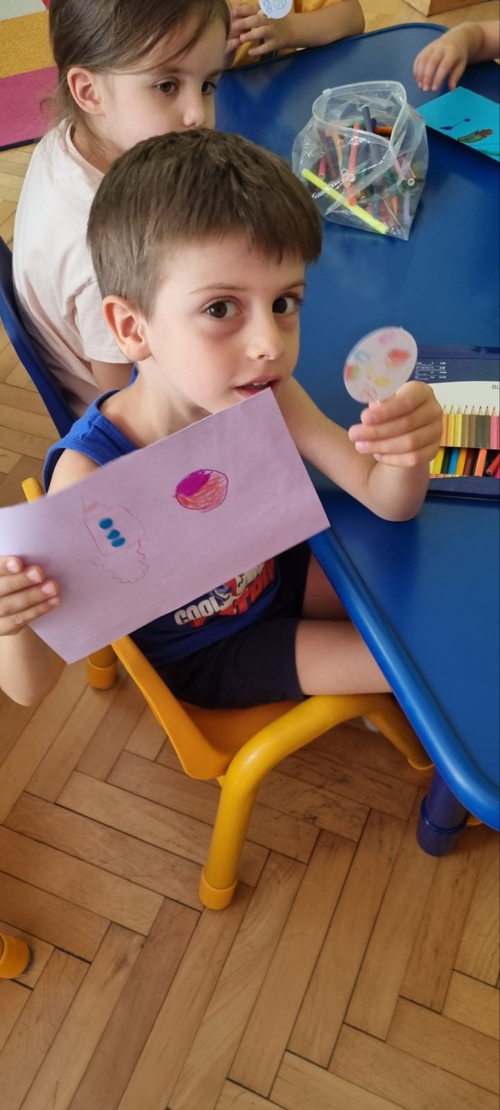 След историята създадохме наша собствена планета — с ръце, цветове и въображение. Имаше изобилие от цветове и идеи, които прехвърлихме на хартия. Така се родиха планетите Шарка, Око, Планина и Топка…