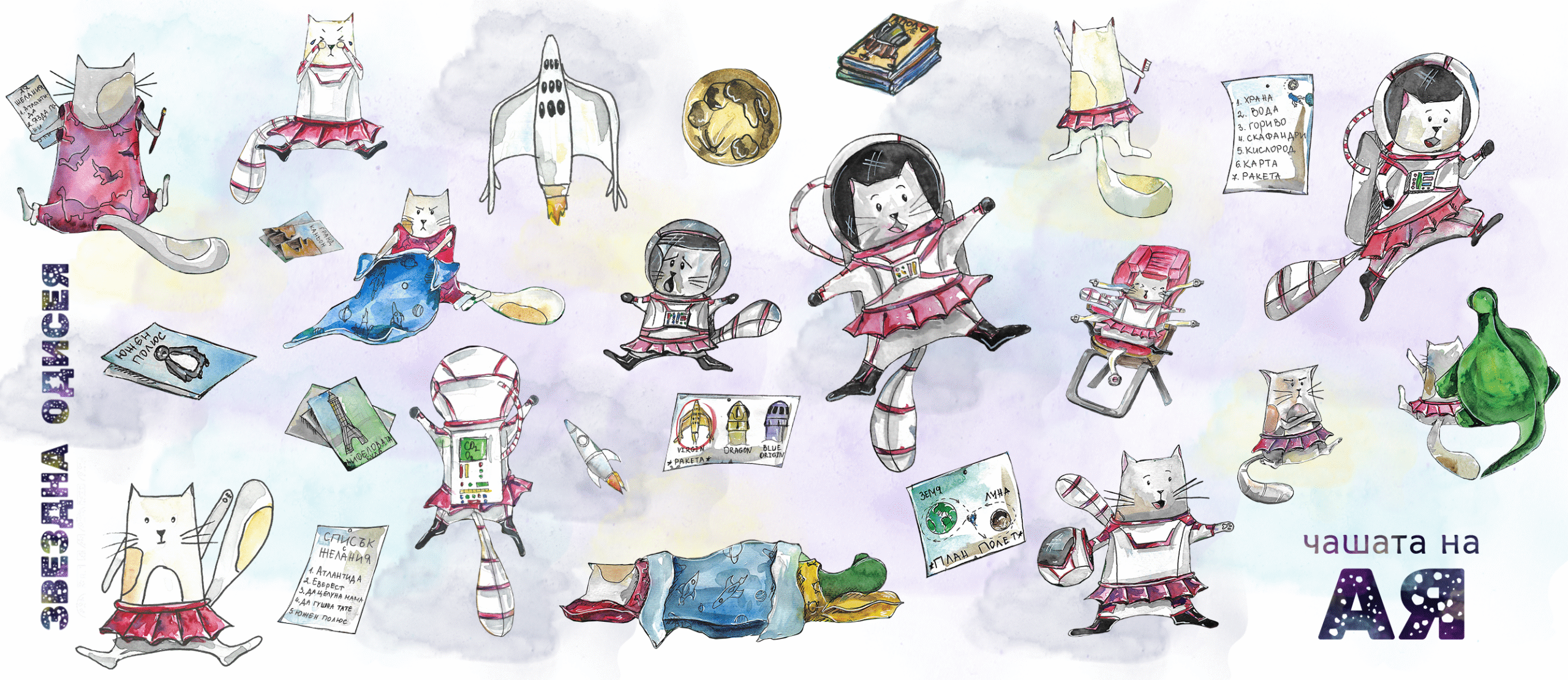 Чашата е с оригинални авторски илюстрации на коте Ая от книгата „Звездна одисея“. Превърнете всяка глътка чай, мляко или какао в космическо приключение като персонализирате чашата с името на вашето дете!