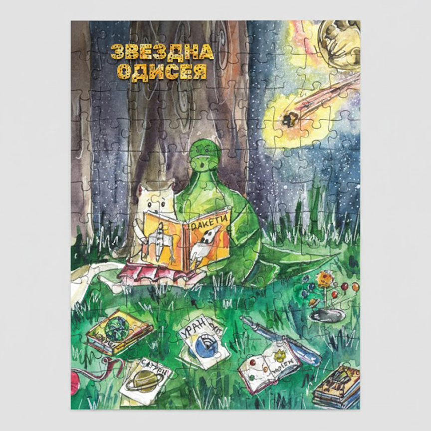 Потопете се в магията на Вселената с този уникален пъзел, вдъхновен от авторските илюстрации на книгата „Звездна одисея“! Tой е перфектното забавление както за деца, така и за възрастни, които обичат предизвикателствата и красивите детайли.